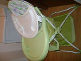 Vand scaun de masa,stare foarte buna,prevazut cu suport de depozitare a jucariilor,ham pentru fixarea copilului pe tot timpul mesei,2 mese din care una se poate detasa, prevazute cu suport pentru pahare.