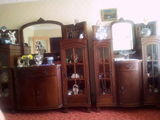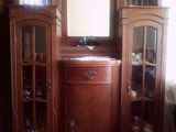 Vand mobila stil venetian formata din 2 corpuri cu vitrine si comode si 6 scaune din piele. Geamurile si oglinzile sunt din cristal.